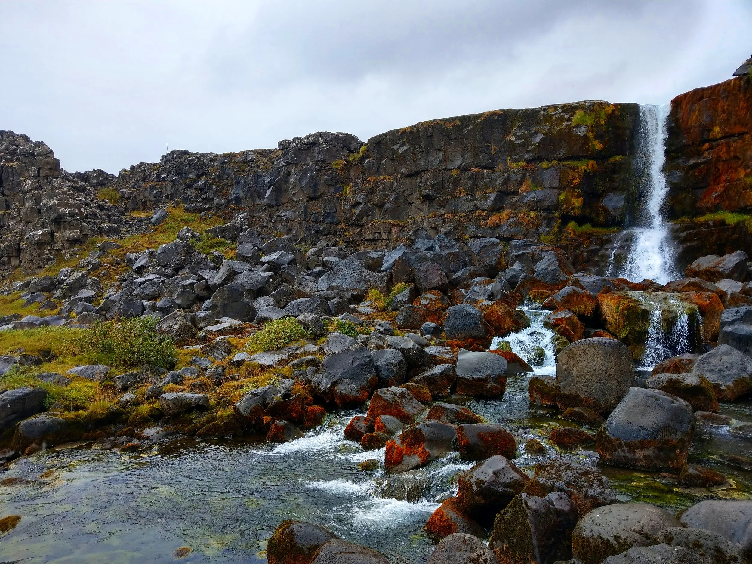 Within the Almannagja Ravine, you can find the park’s only waterfall, Oxararfoss. While a beautiful scene, this waterfall represents a little bit of violent history, and the walking path towards the falls provides some informational plaques as you meander between the towering lava walls.
