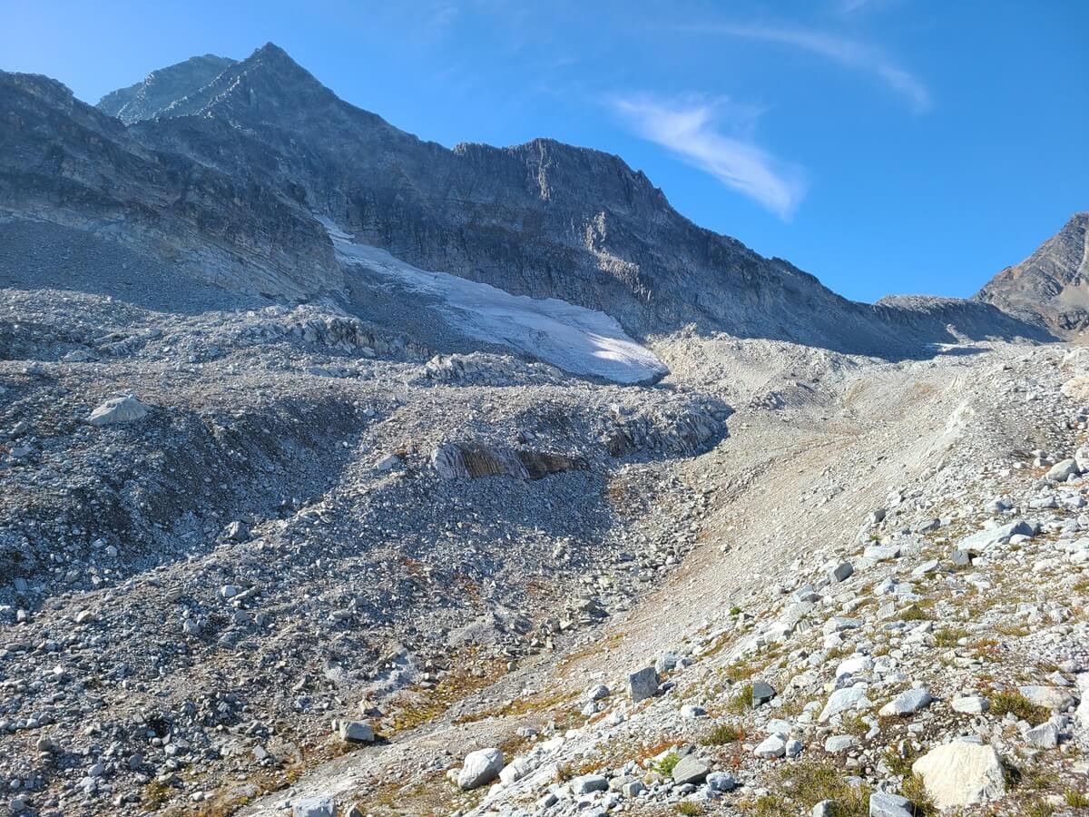 A small glacier seen from the top of the moraine above Hermit Meadows