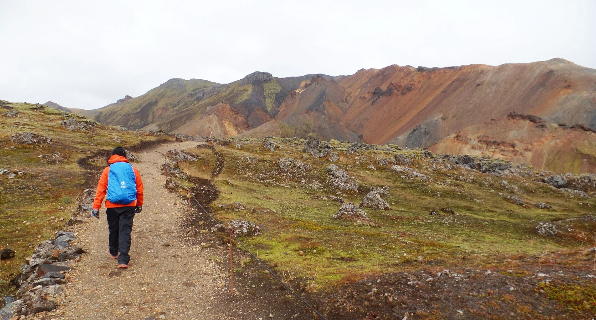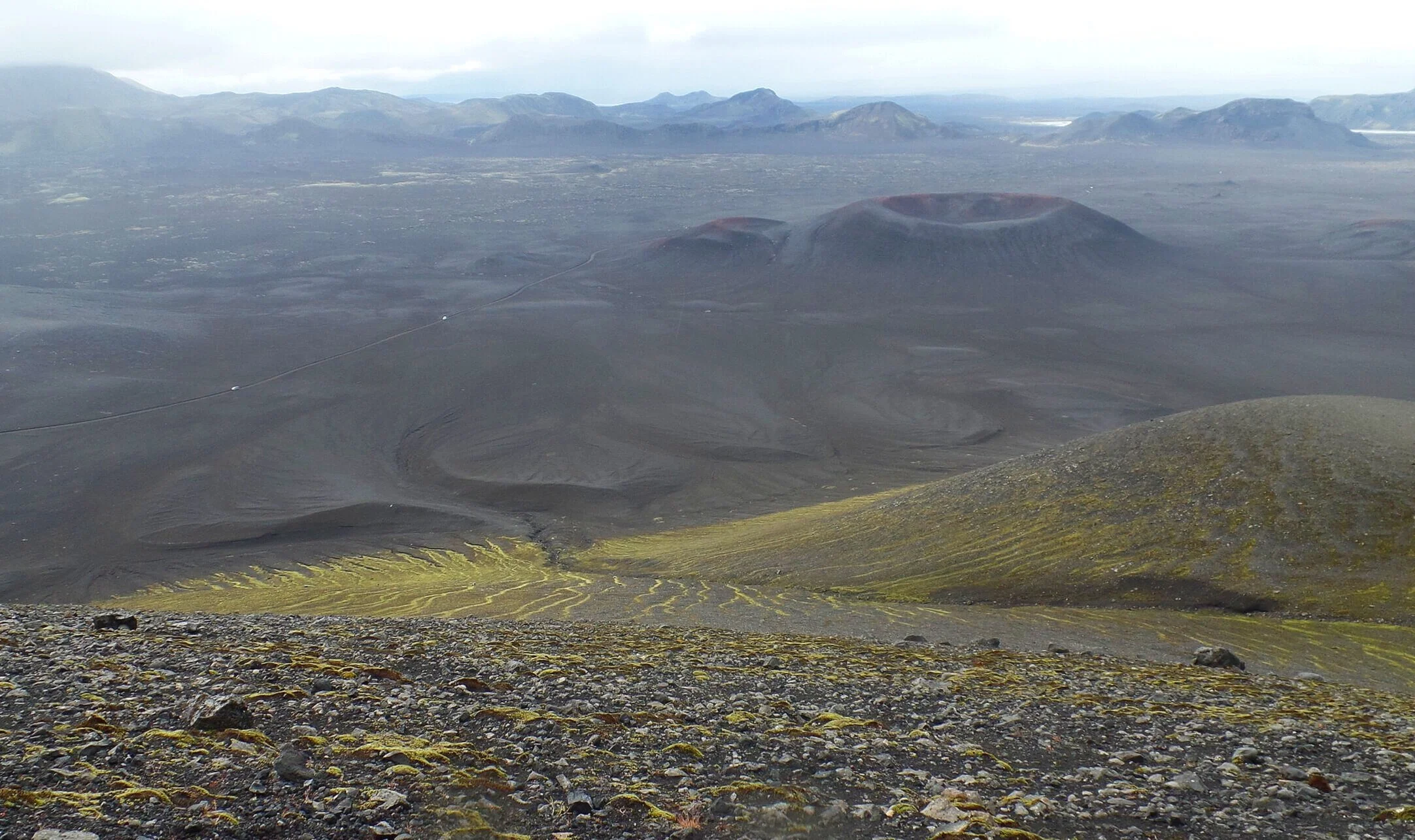 This is a mostly flat loop through the Laugahraun lava field, which was formed from an eruption back in 1477. It starts with a short but steep climb from basecamp up into the lava field following the red and white-marked trail. The start of this trail is well-marked by signs that will lead you to an area just behind the Landmannalaugar hut where the hike begins.