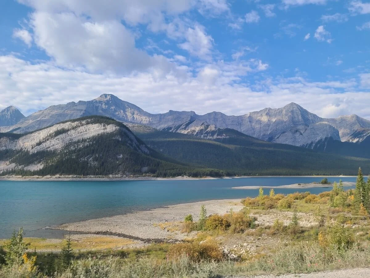 Three Sisters Viewpoint: Stop here on the North end of Spray Lakes for an awesome lakeside view.