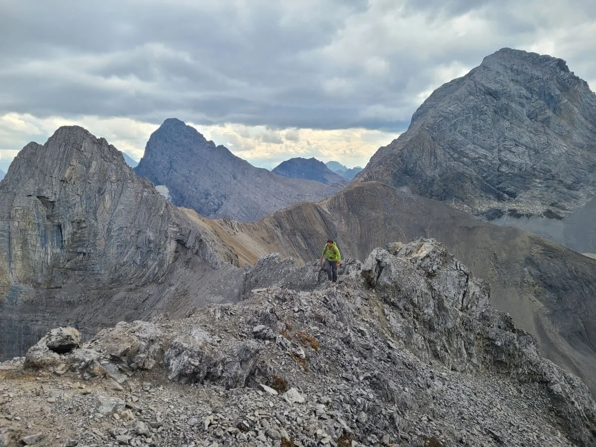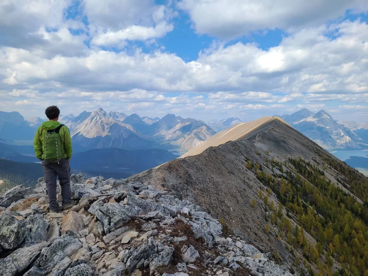 Staring out over the dramatic Kananaskis mountains from the first peak on the Tent Ridge trail