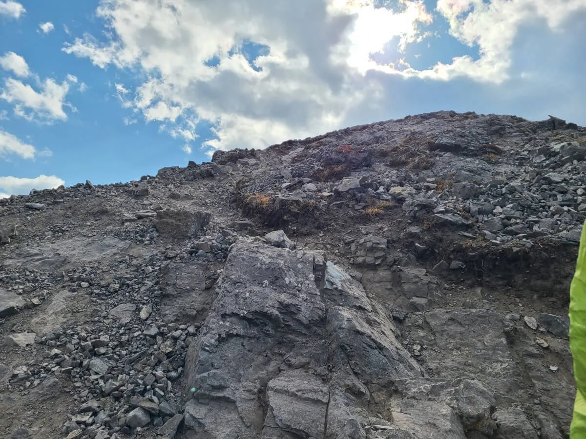 There was one particularly weird and rocky part along the ridge that I feel is worth mentioning here. At the end of the rocky part there was a bit of a drop off to continue along the ridge and we had to do a tough downhill down a scree section off the side of it to get down and around it. Once we got further along the ridge and looked back, we noticed this part seemed to be holding up the other groups behind us as well. This is just to say the tricky elements aren’t over yet and you will still be putting in some work on this side of the ridge.