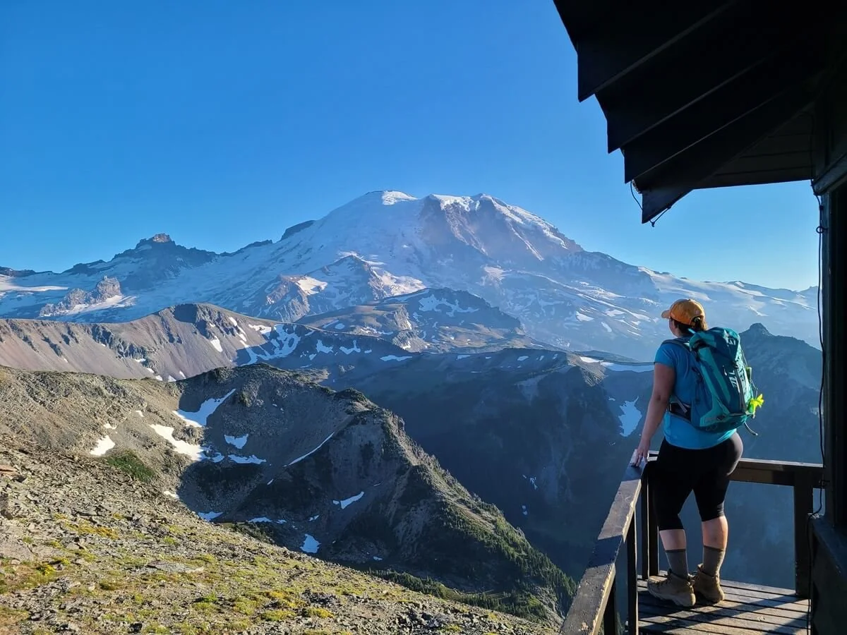 The Mount Fremont Lookout Trail- This is the most popular hike in Sunrise. It’s relatively easy but has a huge payoff, with stellar views of Mount Rainier practically the entire way. The trail ends at an old fire lookout where you can hang out and enjoy the amazing views. This hike is particularly great at sunset, when you can watch the purple and gold alpenglow light up Mount Rainier as the sun sets. Check out our Mount Fremont hiking guide to learn more about how to hike this trail, what to expect along the way, and how to hike it for sunset!