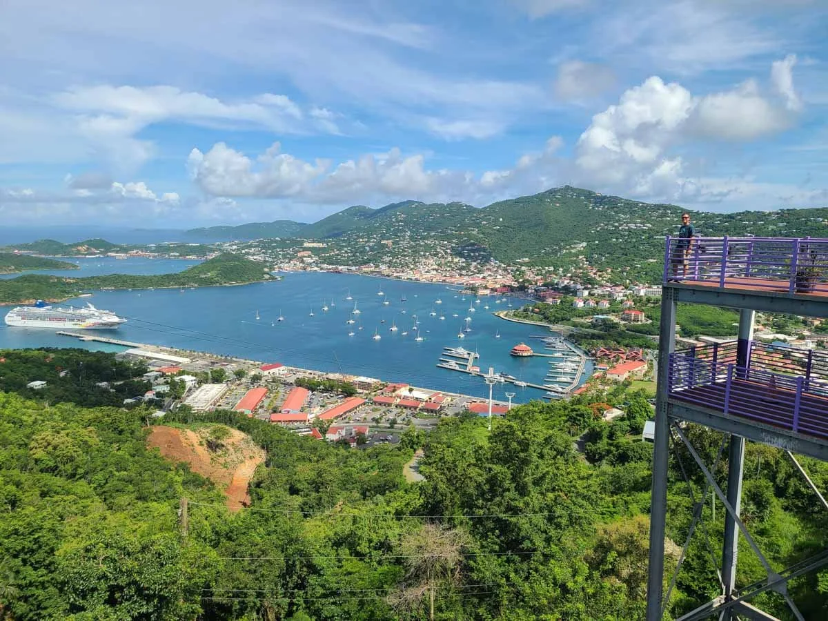 The dock in Charlotte Amalie is only about ten minutes from the airport, so it’s a shorter taxi ride than to Red Hook