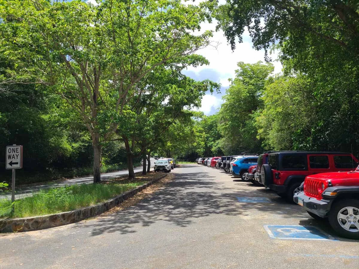 If you are visiting Virgin Islands National Park in the peak winter months, it is definitely recommended to try to get to more popular places like Trunk Bay, Maho Bay, Cinnamon Bay, and Salt Pond Bay before 10 am to get parking, which is limited in lots of places. When we visited in June when crowds were low, we had no issues except for Trunk Bay.